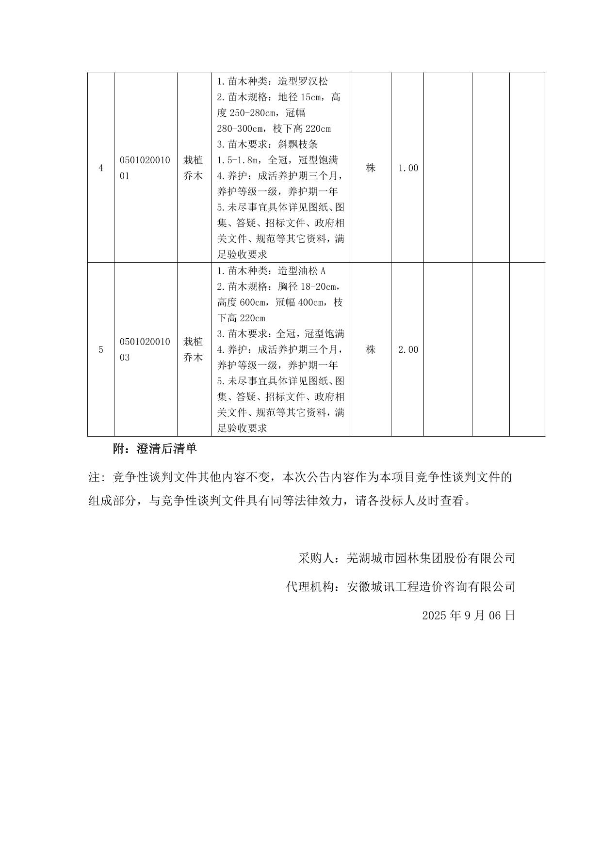 澄清公告-园林绿化项目