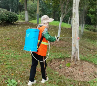 病虫害阻击:对花灌木、高大乔木等易感地老虎,钻心虫植物喷洒健歌2%噻虫啉微襄悬浮剂,易感蚜虫植物喷洒比虫琳溶液,发现食叶害虫喷洒苦参碱溶液。