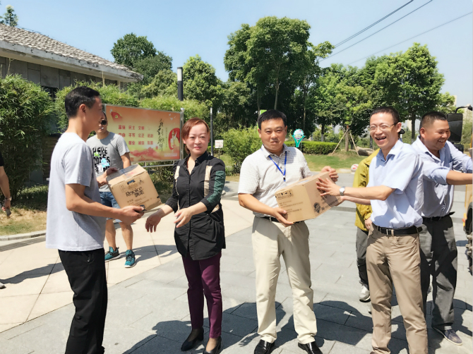 7月24日上午,芜湖城市园林集团有限公司领导带领集团工会和相关部门负责人分别对集团各子公司始终奋战在抗旱保苗一线的绿化养护工人进行慰问,给在高温下仍然坚守岗位的一线工人们送去了毛巾、肥皂、洗发露等劳保用品以及风油精、藿香正气水等防暑降温物品。